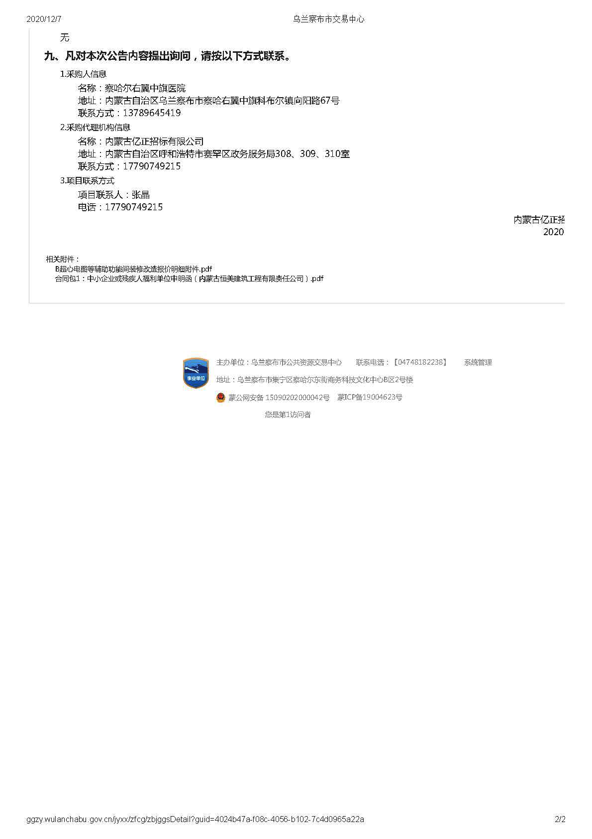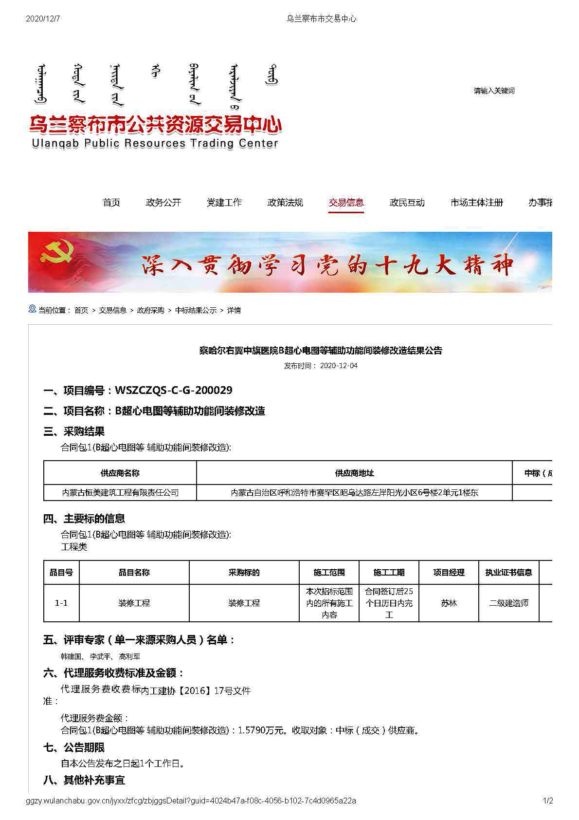 中恒華美集團(tuán)中標(biāo)快訊-察哈爾右翼中旗醫(yī)院B超心電圖等輔助功能間裝修改造結(jié)果公告