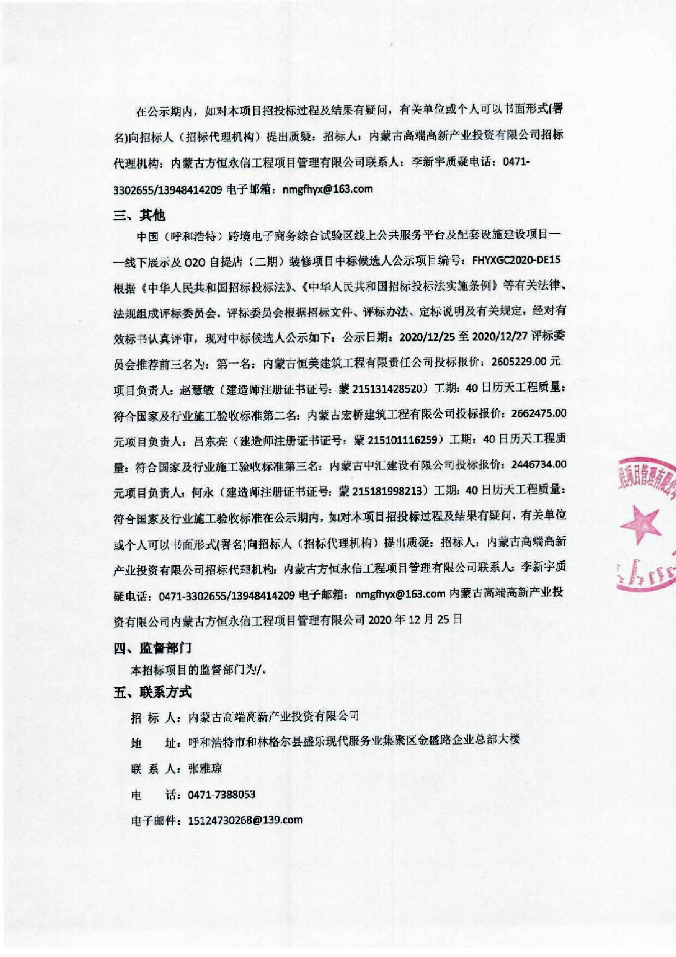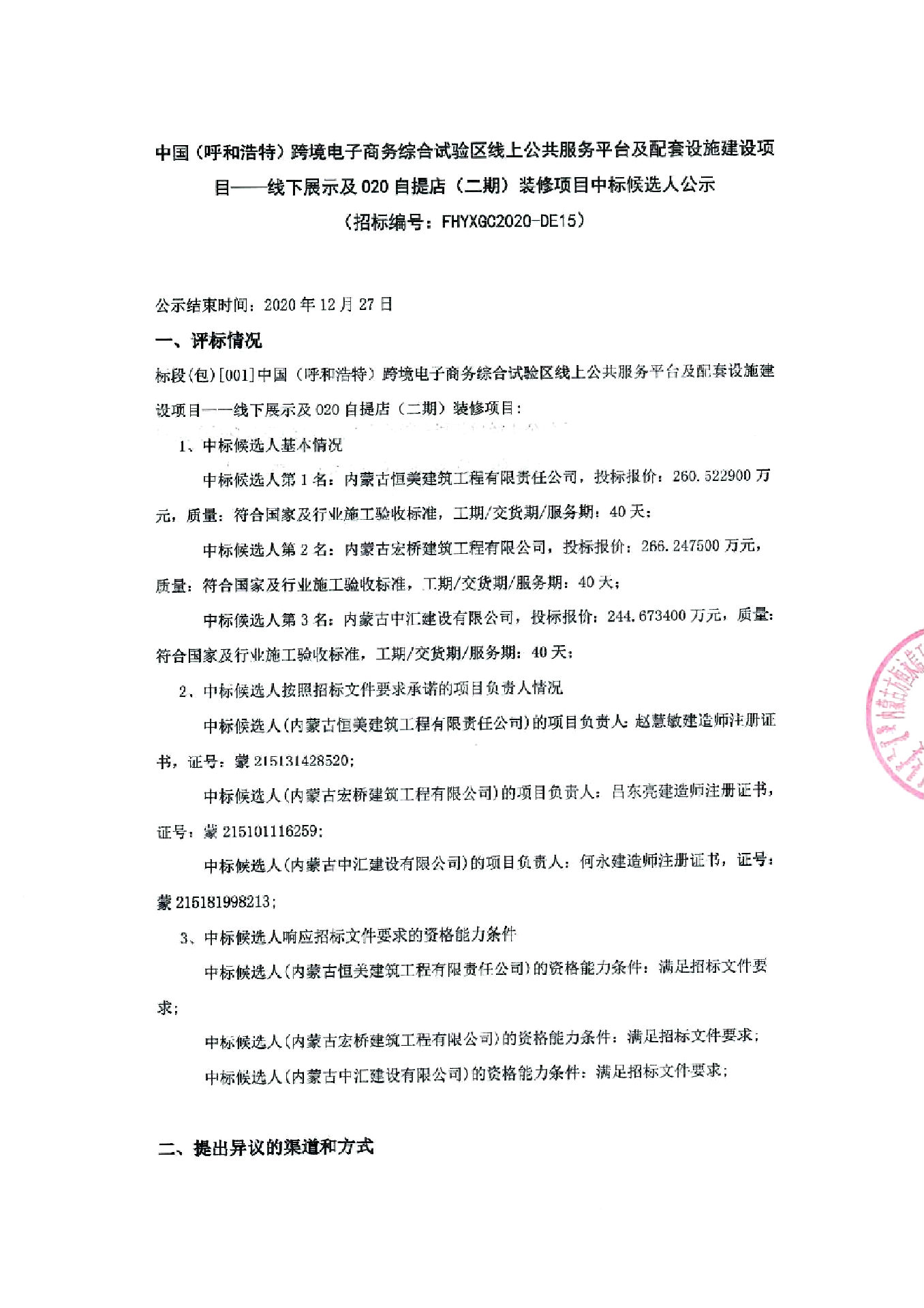 中恒華美集團(tuán)中標(biāo)快訊-中國(呼和浩特)跨境電子商務(wù)綜合試驗(yàn)區(qū)線上公共服務(wù)平臺及配套設(shè)施建設(shè)項(xiàng)目——線下展示及020自提店(二期)裝修項(xiàng)目中標(biāo)候選人公示